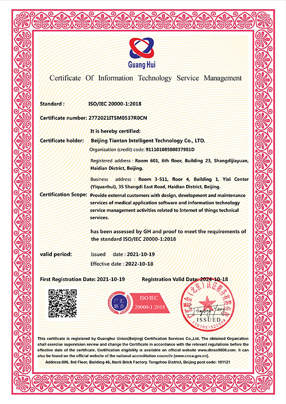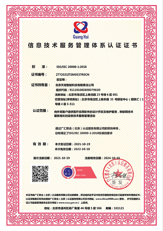 信息技術(shù)服務(wù)管理體系認(rèn)證證書