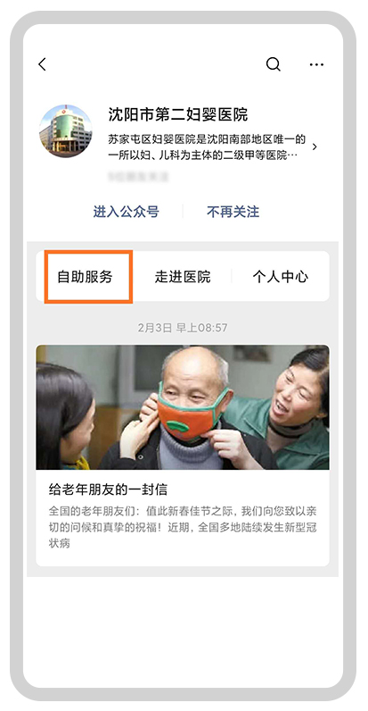 微信公眾號搜索:沈陽市第二婦嬰醫(yī)院,或掃描醫(yī)院二維碼,關(guān)注公眾號。