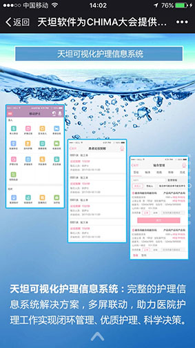 天坦軟件在本次展會展出天坦可視化護理信息系統(tǒng)、天坦移動醫(yī)生助手、天坦移動查房筆等自主主打產(chǎn)品。天坦工作人員在展前做了精心準備,在展會上為大家進行產(chǎn)品講解和演示,可以生動還原產(chǎn)品的使用情景,請大家拭目以待。