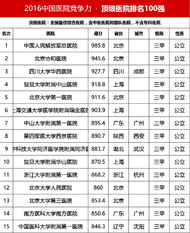 “頂級(jí)醫(yī)院100強(qiáng)”采用的排名指標(biāo)體系包括四個(gè)方面:醫(yī)院最優(yōu)規(guī)模(實(shí)開床位數(shù)、年門急診量、年出院量、全院人數(shù));醫(yī)療技術(shù)(正高職稱人數(shù)/全院人數(shù)、全院醫(yī)師人數(shù)/實(shí)開床位數(shù)、醫(yī)療設(shè)備資產(chǎn)/總資產(chǎn)、年住院手術(shù)量/年出院量、國家級(jí)衛(wèi)紀(jì)委臨床重點(diǎn)???總??茣?、ICU床占比);醫(yī)院運(yùn)行(平均住院天數(shù)、床位使用率、門診均次費(fèi)用/當(dāng)?shù)厝司鵊DP、住院均次費(fèi)用/當(dāng)?shù)厝司鵊DP、外省住院病人占比);學(xué)術(shù)影響力(院士人數(shù)、學(xué)術(shù)領(lǐng)袖占比、教育部重點(diǎn)學(xué)科及重點(diǎn)實(shí)驗(yàn)室/總??茢?shù)、本年度獲國家自然科學(xué)基金項(xiàng)目數(shù)量和總?cè)~)。