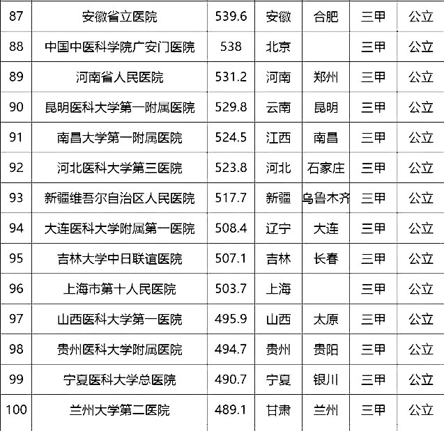 “100強(qiáng)”榜單中,入圍最多的三個(gè)省市分別是北京(16家醫(yī)院)、上海(13家醫(yī)院)、廣東(9家)。“100強(qiáng)”共覆蓋32個(gè)城市,包括4個(gè)直轄市(36家醫(yī)院)、23個(gè)省會(huì)城市(59家醫(yī)院)、5個(gè)地級(jí)市(5家醫(yī)院)??傮w看,城市的醫(yī)院平均得分和上榜機(jī)構(gòu)數(shù)有一定的相關(guān)性,上榜機(jī)構(gòu)數(shù)多的城市一般得分均值較高,說明這些城市醫(yī)院整體實(shí)力較高。
